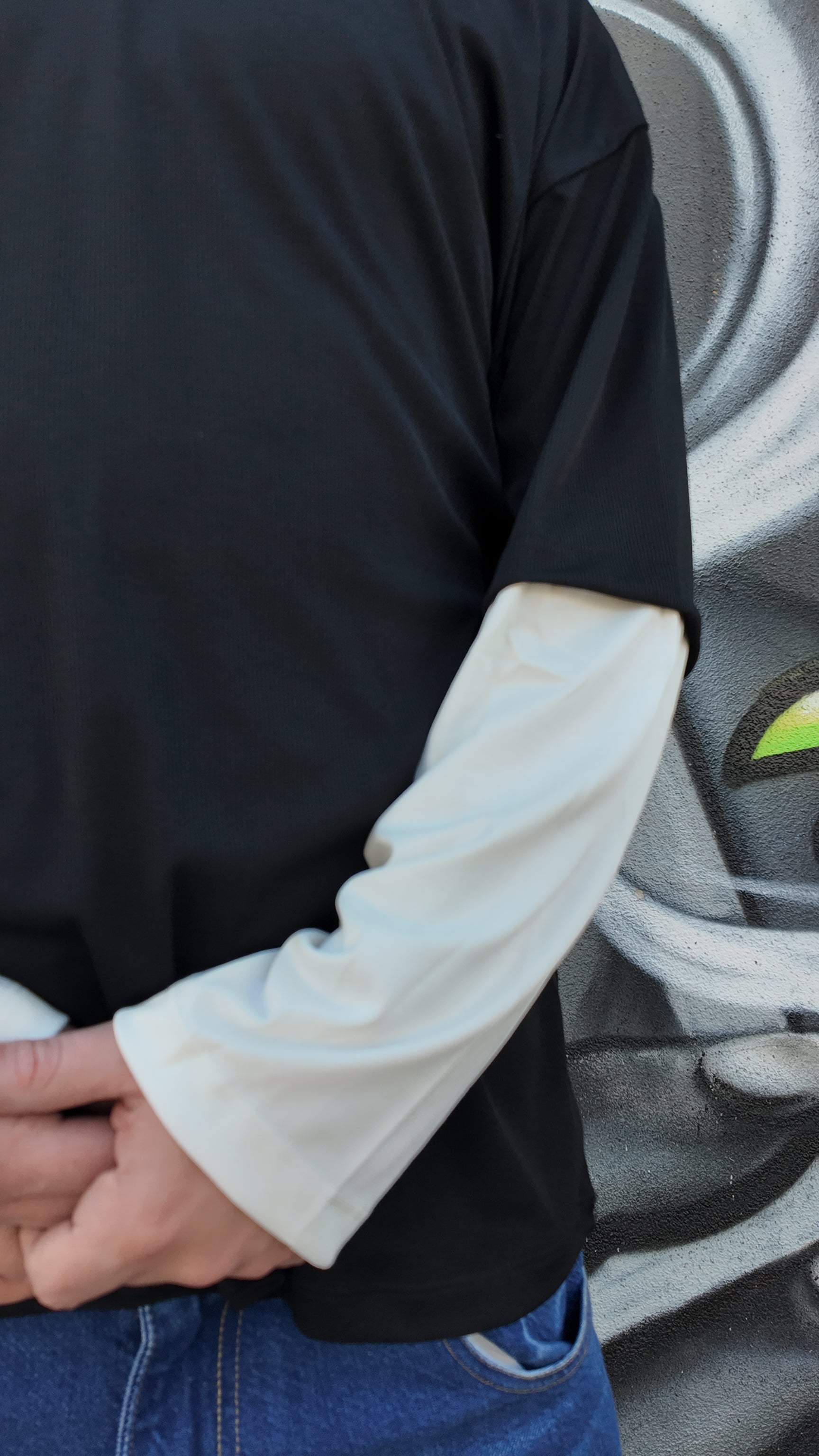 Long sleeve con tessuto a coste e manica doppiata nera e bianca.